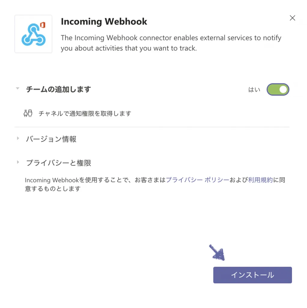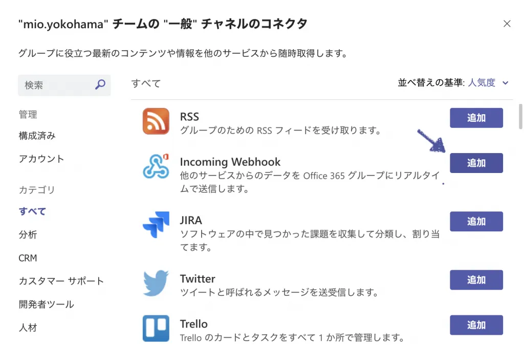 Microsoft Teamsのコネクタ(IncomingWebhook)の構成