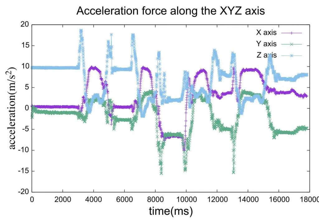 set title "Acceleration force along the XYZ axis"