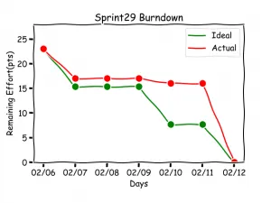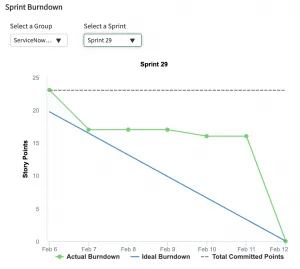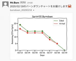 ServiceNow ITBMのアジャイル開発では、登録したストーリの進捗状況からBurnDownChartを表示することができます。 しかし、私達のチームがそれを使うにはいくつかの問題があったため、ServiceNowのREST APIから指定スプリントの情報を取得し、チャートを描画しSlack投稿するPythonプログラムを作成しました。 いくつかの問題 ・土日祝休日も仕事をするような理想線になっている ・チャートを見るのにもたつく ・デイリーで関係者に共有したい(ロールの有無によらず) ServiceNowのBurnDownChartはこの様な感じです。 Feb 8,9,11は休日なのでポイントは消化されないべきですが、理想線(青色)が一直線に引かれています。 これでは進捗が遅れているのか一目で分かりにくいです。