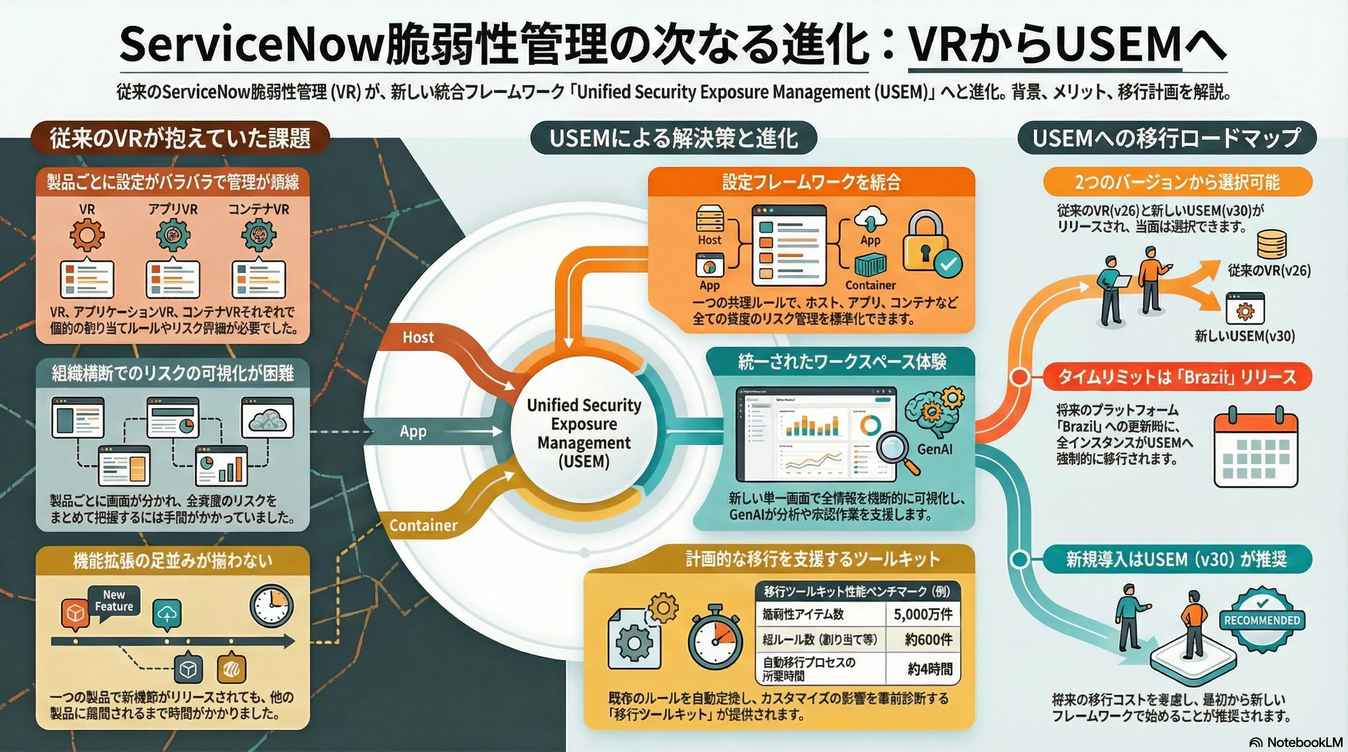 2024年12月のリリースにより、ServiceNowの脆弱性管理(Vulnerability Response)は、 「Unified Security Exposure Management(USEM:統合セキュリティ公開管理)」 を中心とした新たな構成フレームワークへと移行しました。